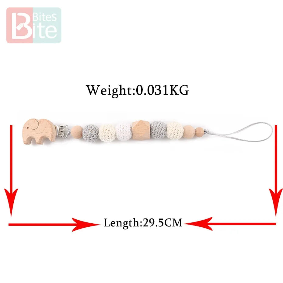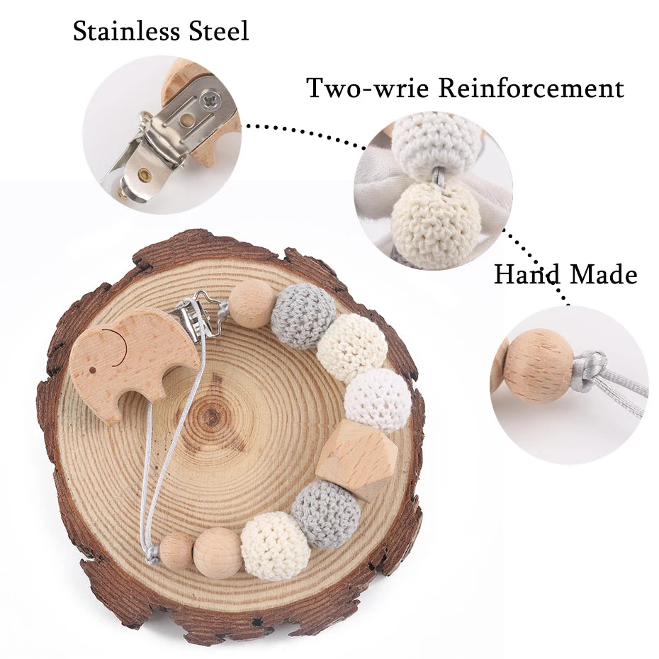Baby Pacifier Chain Elephant Wooden Clip Geometric Crochet